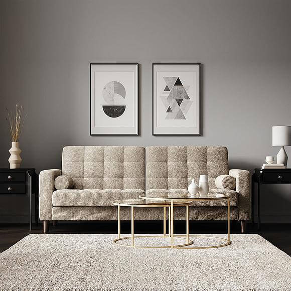 Узкие подлокотники и геометричная стежка подчеркивают сдержанный характер модели.